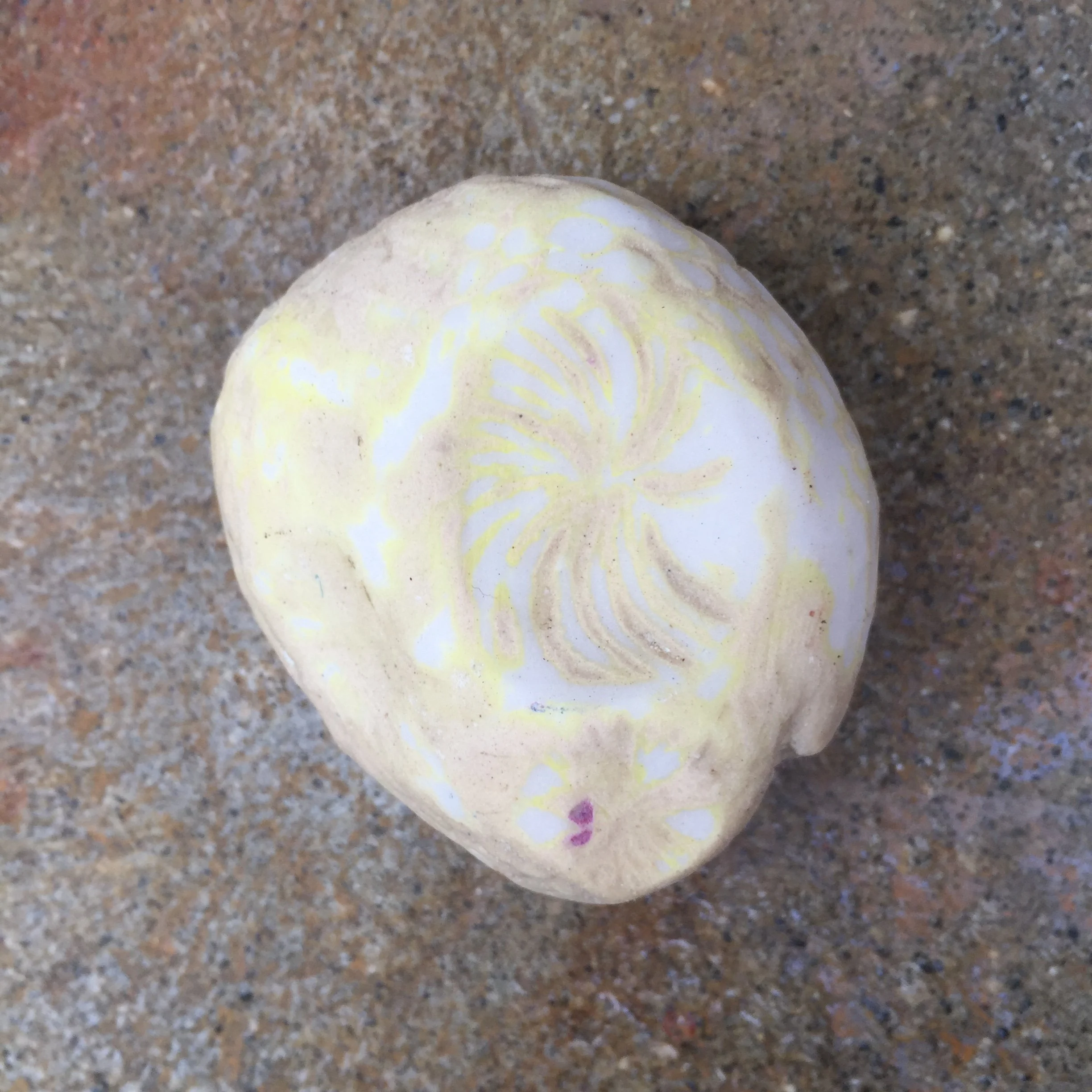 A public art project that began in 2018. thousands of ceramic rocks have been made out of clay and various materials and fired to cone 6. Each of these are then put in public places, including urban and rural communities, parks, restaurants, park benches and hiking trails. When a viewer finds the rock, they have received a gift. Deciding what to do with it, and contemplating it’s meaning is where the viewers contribution blends with the artists.